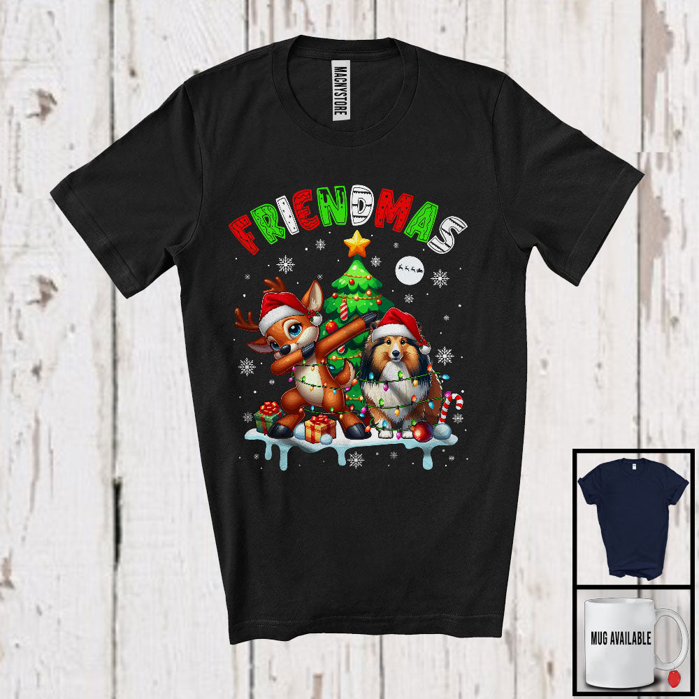 new MacnyStore - Friendmas; Joyful Christmas Tree Santa Shetland Sheepdog Owner; Dabbing Reindeer T-Shirt – Macnystore