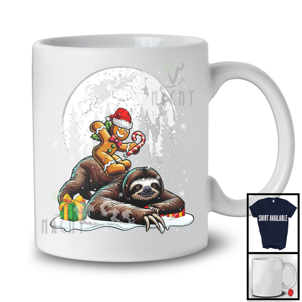 new MacnyStore - Gingerbread Man Riding Sloth; Joyful Christmas Moon Animal Lover; Snowing Around T-Shirt – Macnystore