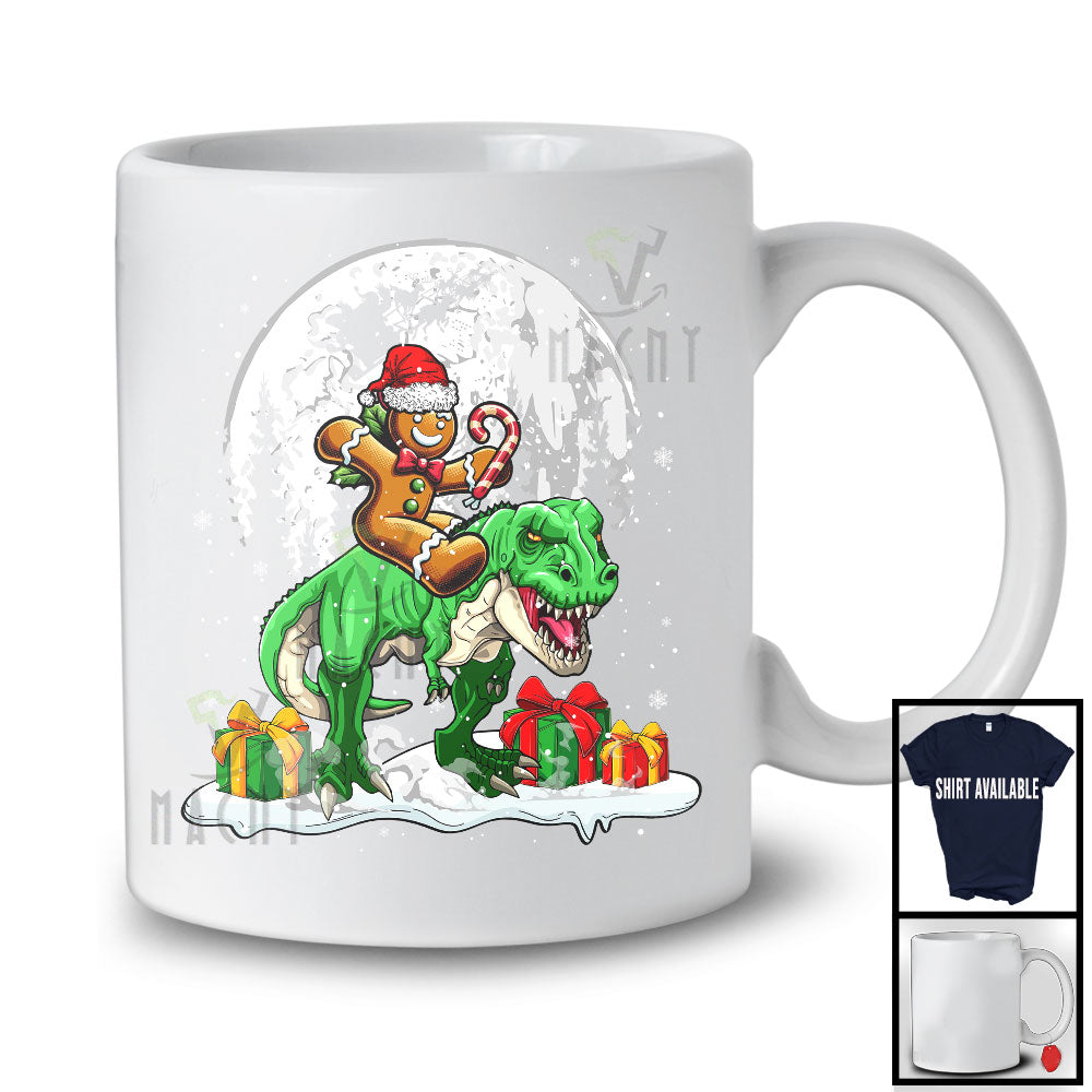 Gingerbread Man Riding T Rex; Joyful Christmas Moon Animal Lover; Snowing Around T-Shirt