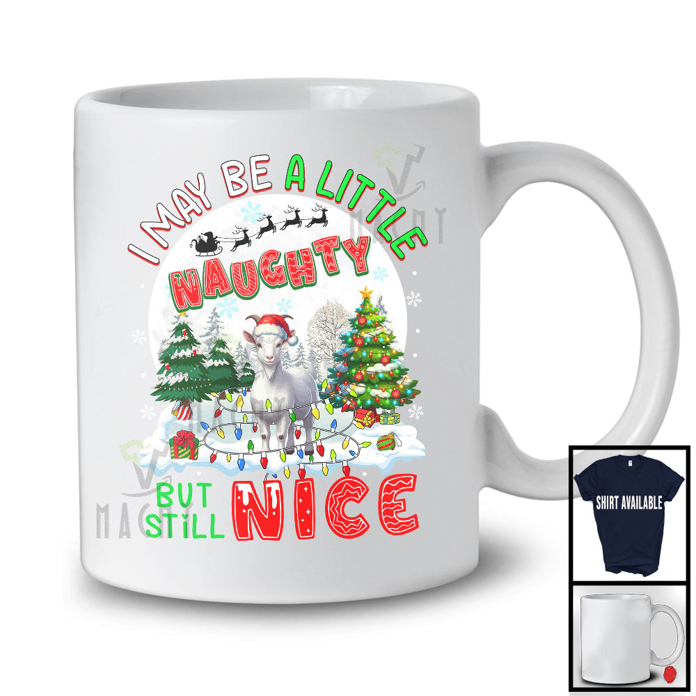 I May Be A Little Naughty But Still Nice; Humorous Christmas Goat Santa; X-mas Moon T-Shirt