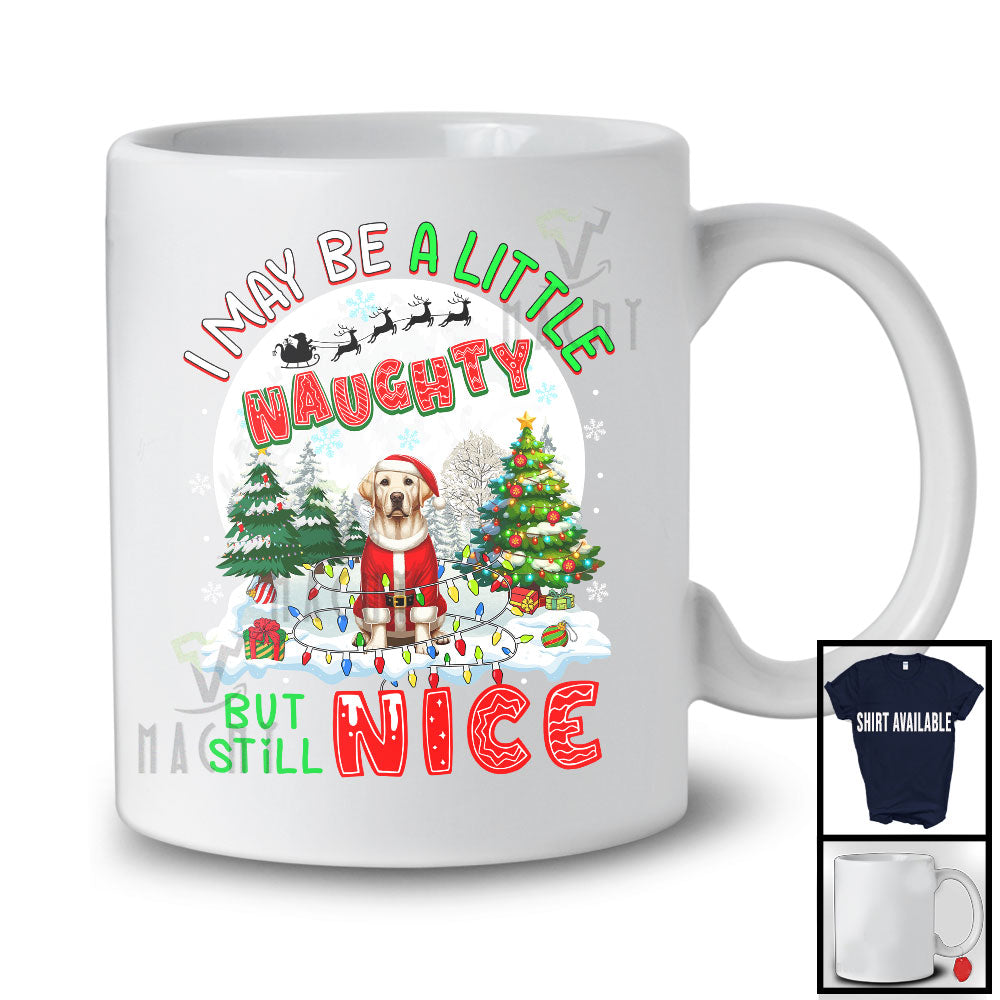 I May Be A Little Naughty; Humorous Christmas Labrador Retriever Santa; X-mas Moon T-Shirt