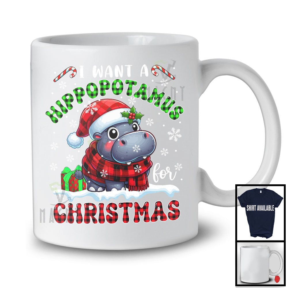 The I Want A Hippopotamus For Christmas; Adorable X-mas Plaid Santa Hippo; Zoo Animal Lover T-Shirt destined to impress, and priced at only $12.95, for a limited time.