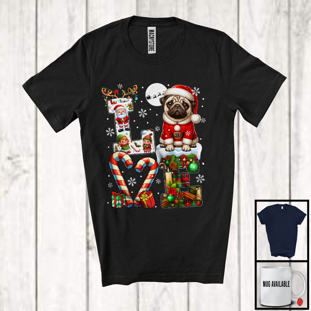 This LOVE, Joyful Christmas Reindeer Santa Pug Candy Cane, Plaid Snowing Animal Lover T-Shirt is great idea gift for your family, friends in this birthday, christmas, mother's day, father's day, patrick's day or any holiday.