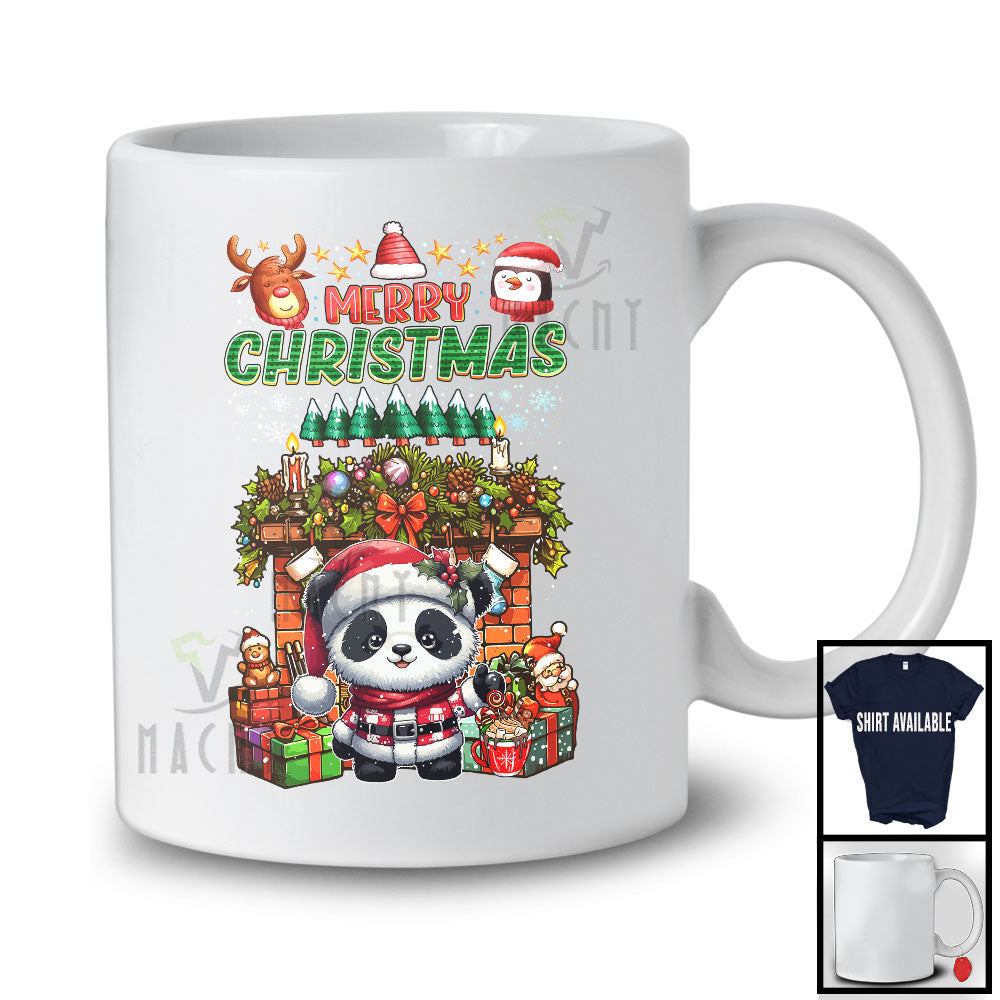 Merry Christmas; Cheerful X-mas Socks Fireplace Santa Panda Lover; Snow Family Group T-Shirt