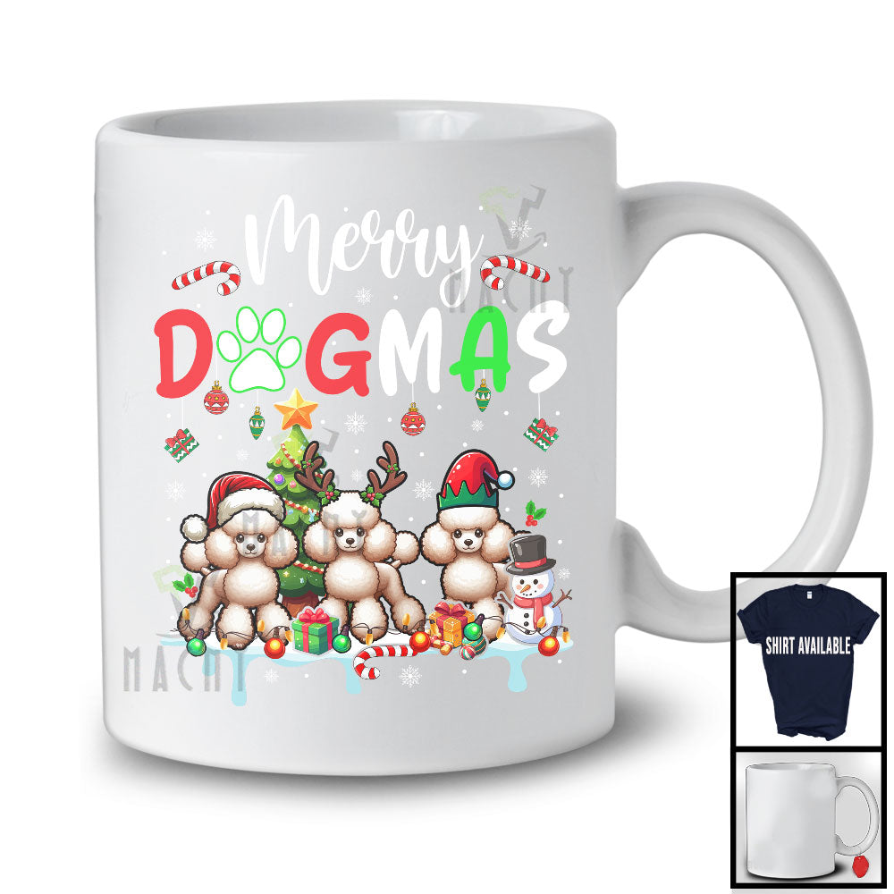 new MacnyStore - Merry Dogmas, Cheerful Christmas Three Santa Reindeer ELF Poodle Owner, X-mas Group T-Shirt – Macnystore