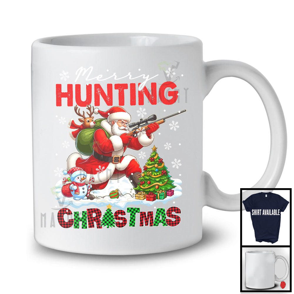 new MacnyStore - Merry Hunting; Joyful Christmas Lights Santa Hunting Lover; X-mas Snowing Around T-Shirt – Macnystore