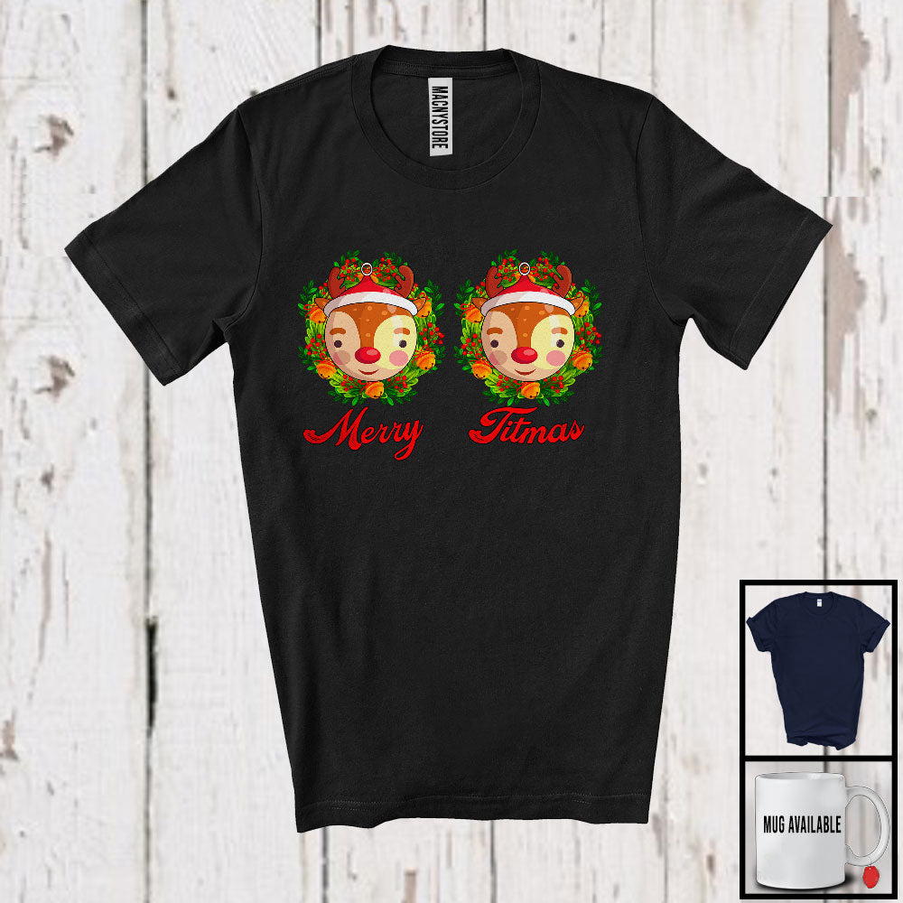 Merry Titmas; Sarcastic Christmas Reindeer Boobs; Naughty Matching X-mas Women Family Group T-Shirt