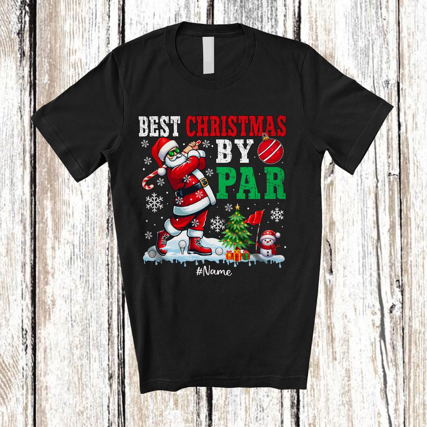 Personalized Best Christmas By Par; Amusing Custom Name Santa Dad Grandpa; Golf Player T-Shirt