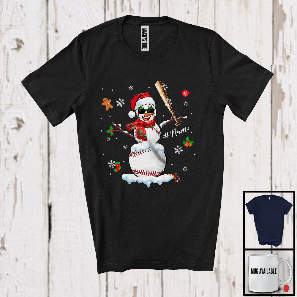 Personalized Custom Name Baseball Santa Snowman Cosplay; Joyful Christmas Sport Player Team T-Shirt