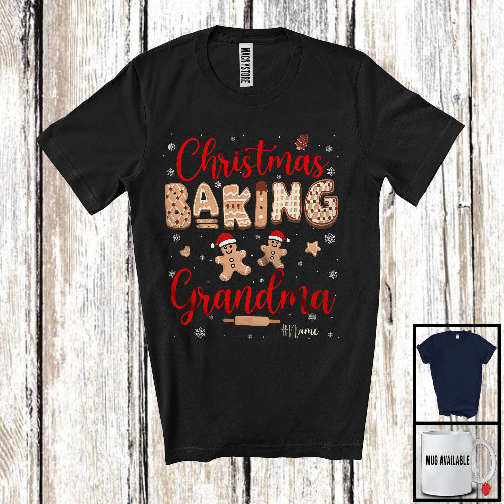 Personalized Custom Name Christmas Baking Grandma; Adorable Santa Gingerbreads; Family T-Shirt