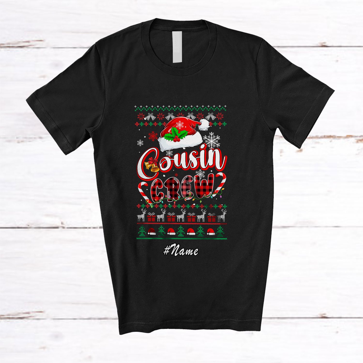 Personalized Custom Name Cousin Crew; Awesome Christmas Sweater Santa Plaid Family T-Shirt. This cotton t-shirt is a durable staple product with a classic fit. One of the most popular items, it has a relaxed style made for everyday and casual wear.