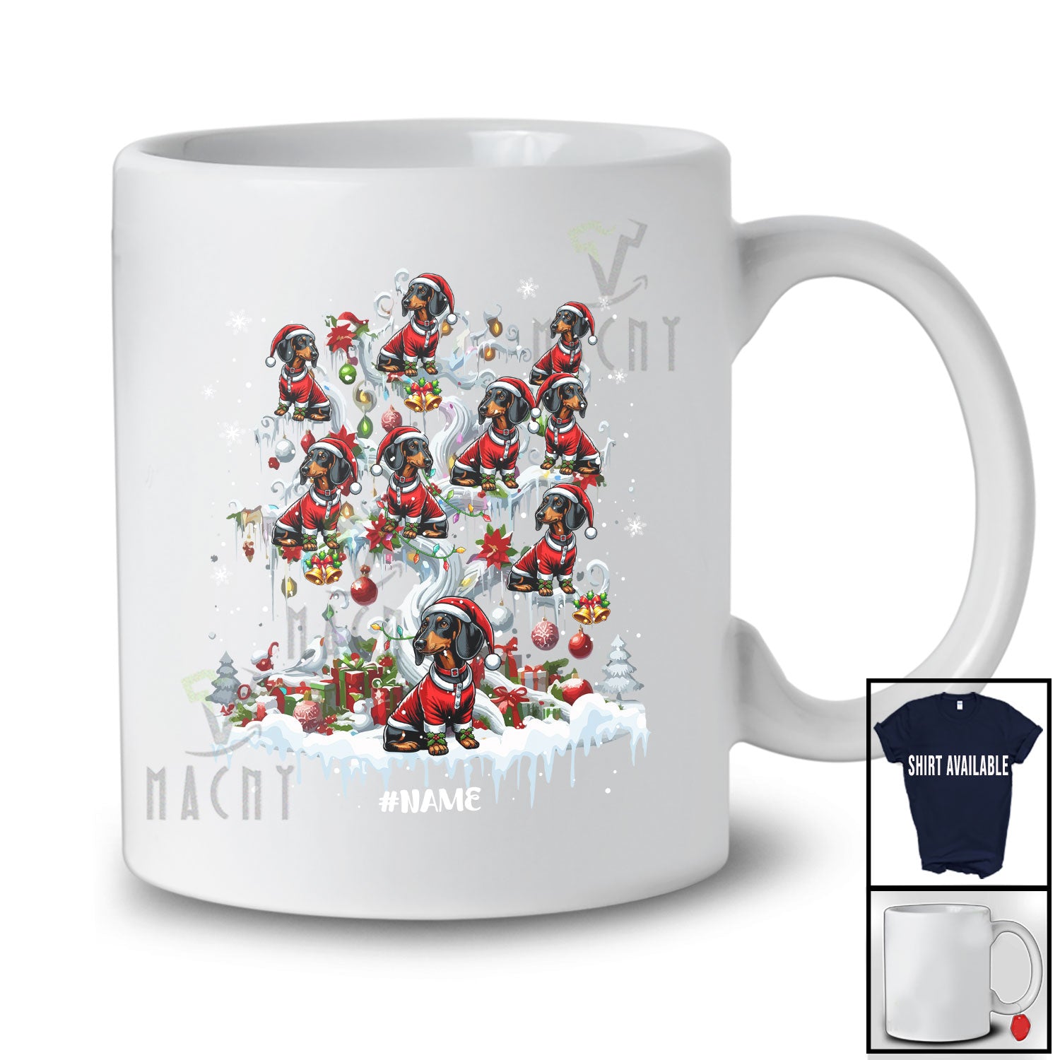new MacnyStore - Personalized Custom Name Dachshund Santa On Christmas Tree Snow; Lovely Winter Family T-Shirt – Macnystore