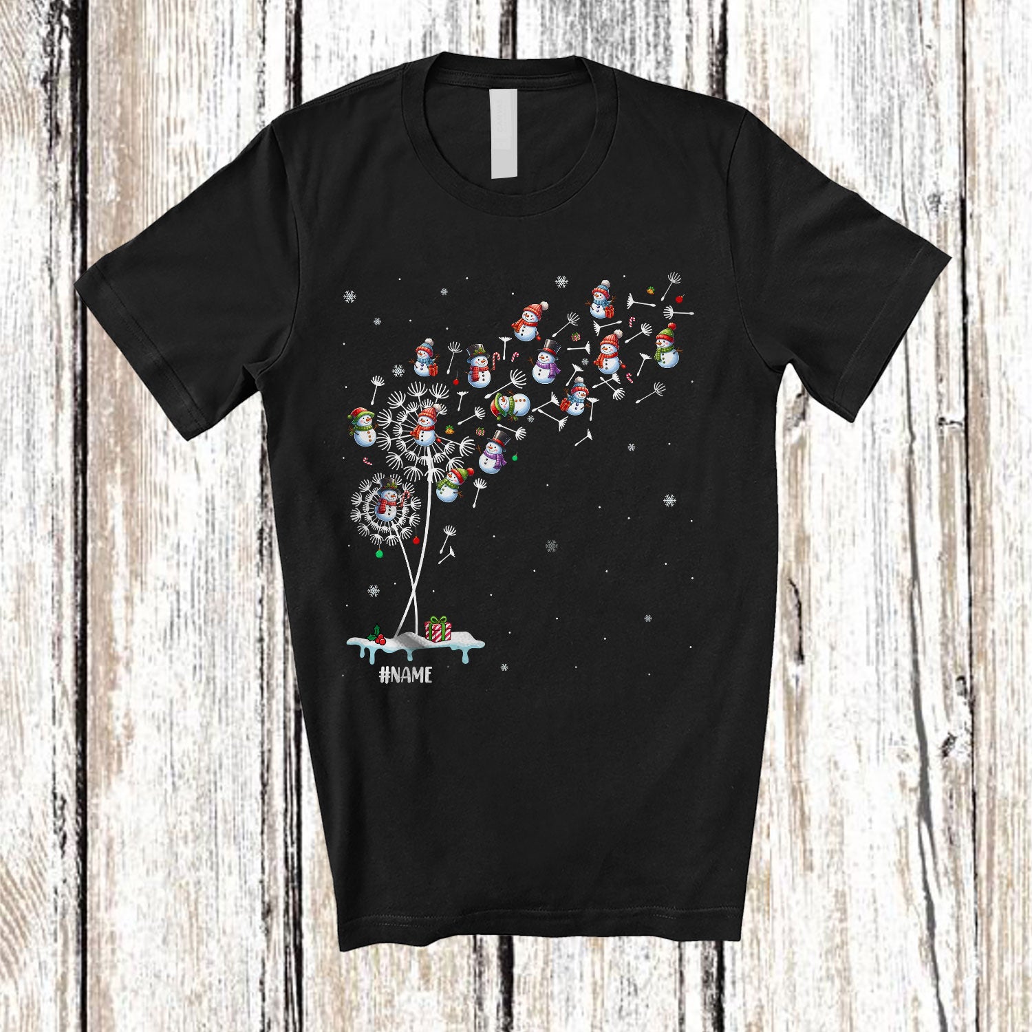 Personalized Custom Name Dandelion Snowman; Joyful Christmas Snowman As Flower; Farming Gardener T-Shirt