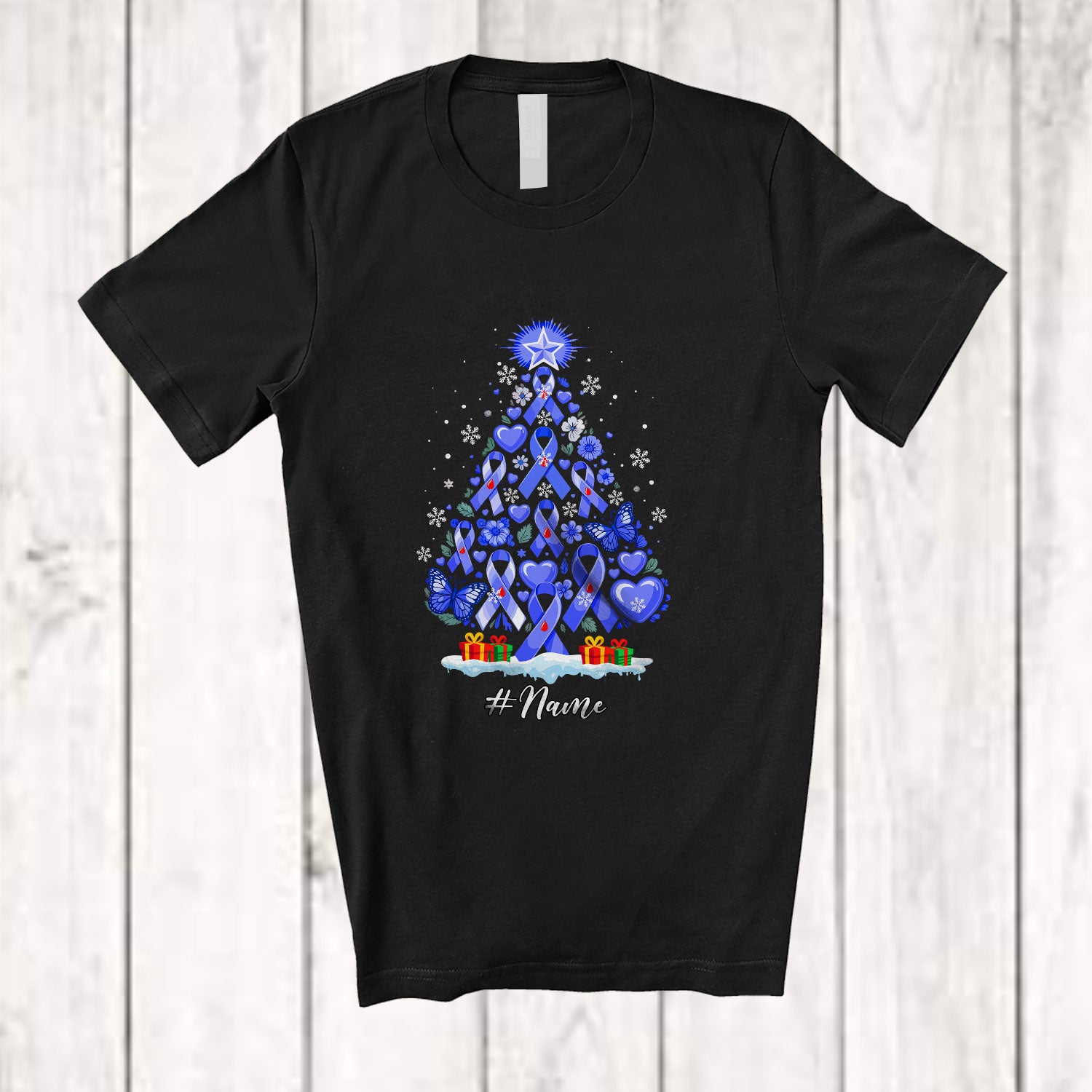 Personalized Custom Name Diabetes Awareness Blue Ribbon Christmas Tree; Lovely X-mas Family T-Shirt
