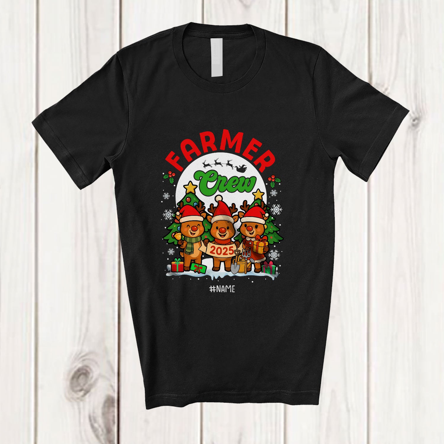 Personalized Custom Name Farmer Crew 2025; Amazing Christmas Three Reindeers; Family T-Shirt