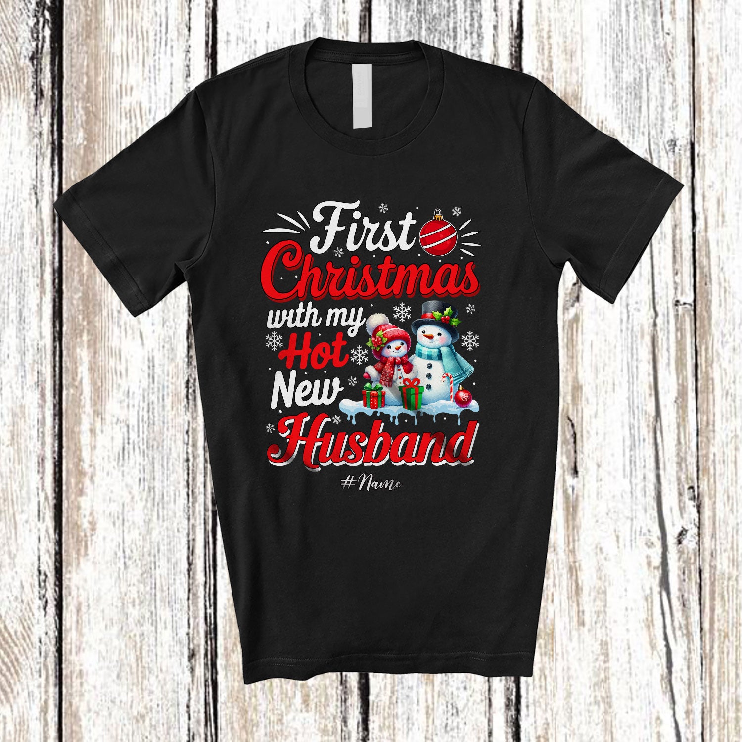 Personalized Custom Name First Christmas with My Hot New Husband; Wonderful Snowman Couple T-Shirt
