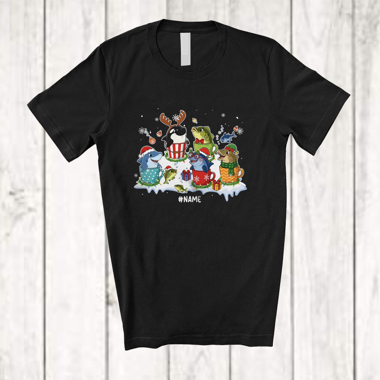 Personalized Custom Name Fish Coffee; Lovely Christmas Santa Shark Orca Bass Tuna; Family T-Shirt