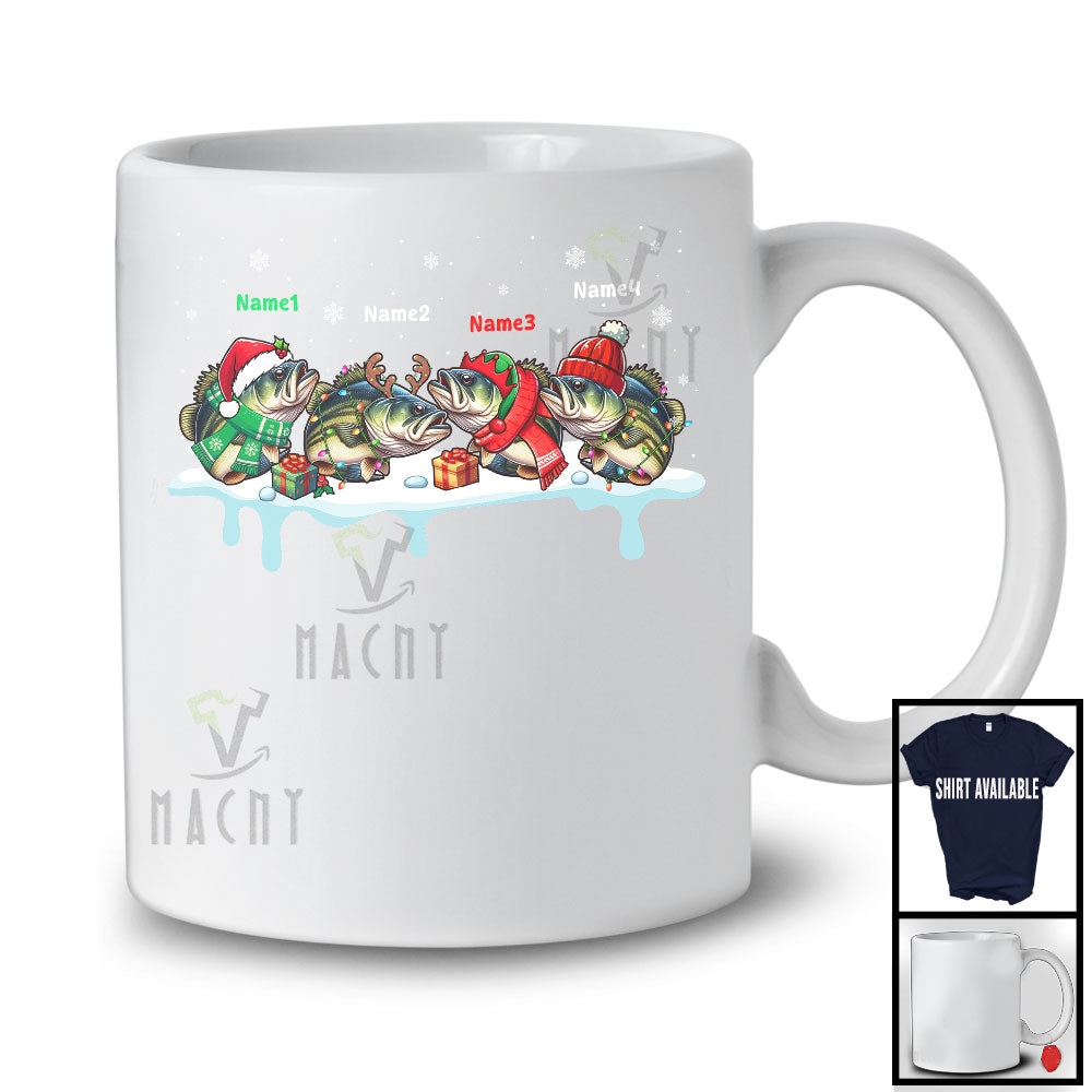 Personalized Custom Name Four Santa Elf Reindeer Bass Fish; Lovely Christmas Bass Fish; Sea Animal T-Shirt