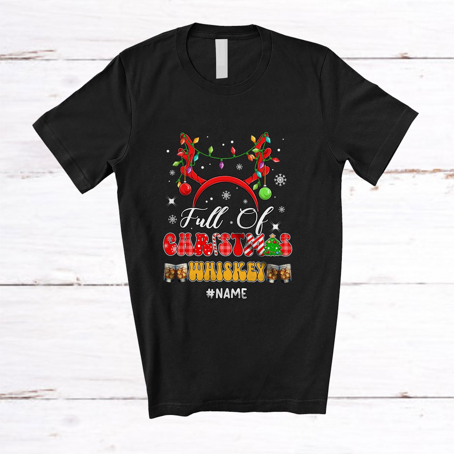 Personalized Custom Name Full Of Christmas Whiskey; Joyful Drinking X-mas Lights Couple Family T-Shirt
