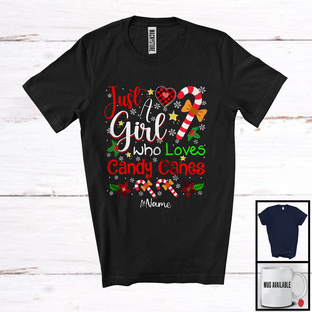 new MacnyStore - Personalized Custom Name Girl Loves Candy Canes; Fantastic Christmas Candy Cane; Snowing T-Shirt – Macnystore