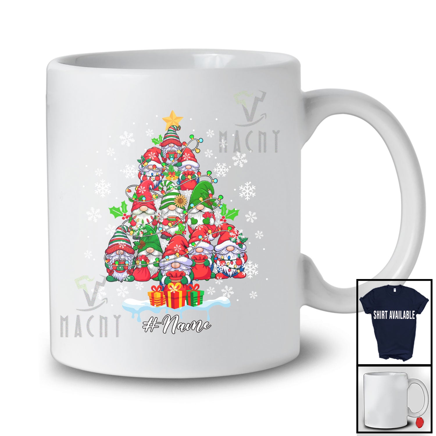 Personalized Custom Name Gnomes Christmas Tree Lights Snowing; Lovely Gnomies Squad; Family T-Shirt. This cotton t-shirt is a durable staple product with a classic fit. One of the most popular items, it has a relaxed style made for everyday and casual wear.