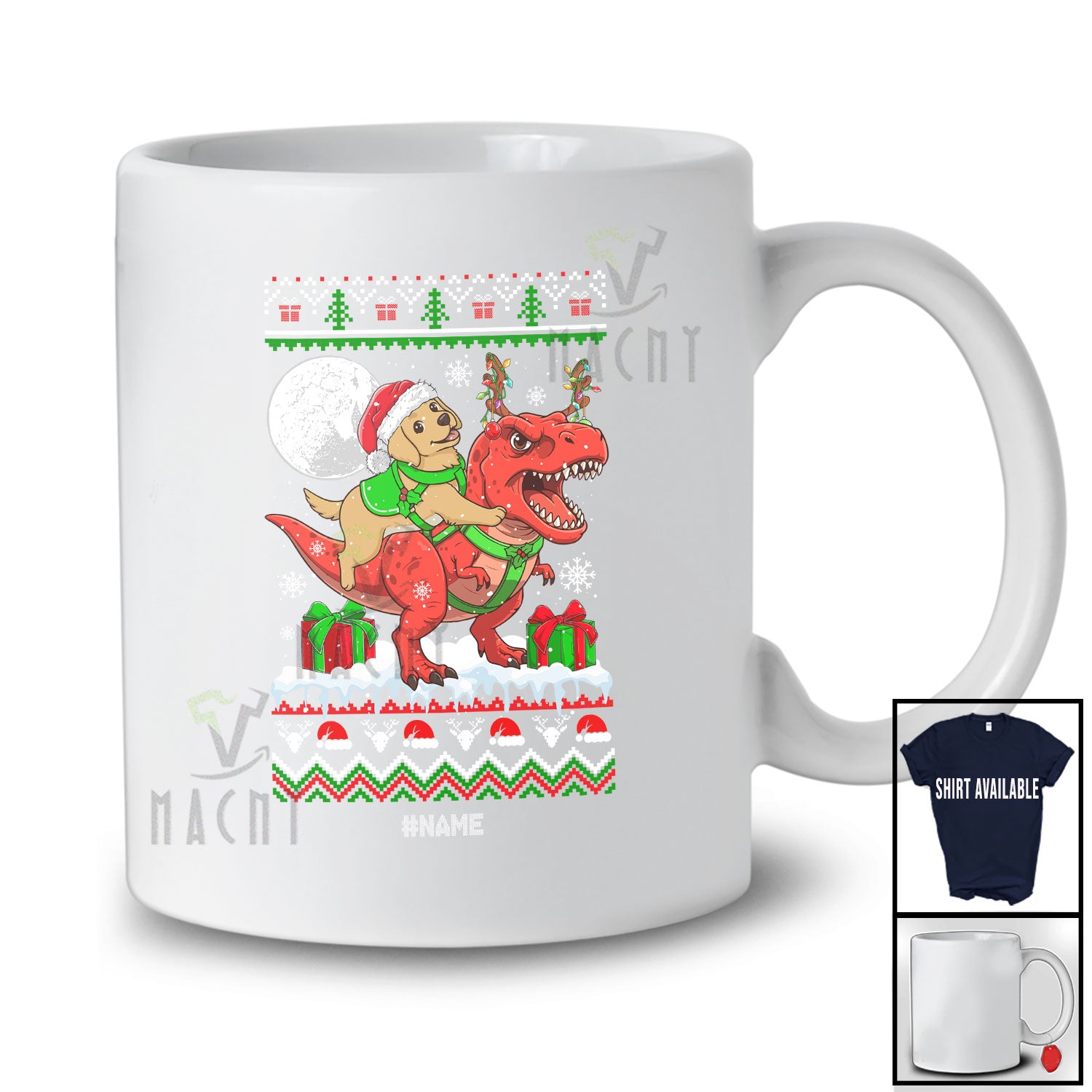 Personalized Custom Name Golden Retriever Riding T-Rex; Awesome Christmas Sweater Animal T-Shirt. This cotton t-shirt is a durable staple product with a classic fit. One of the most popular items, it has a relaxed style made for everyday and casual wear.