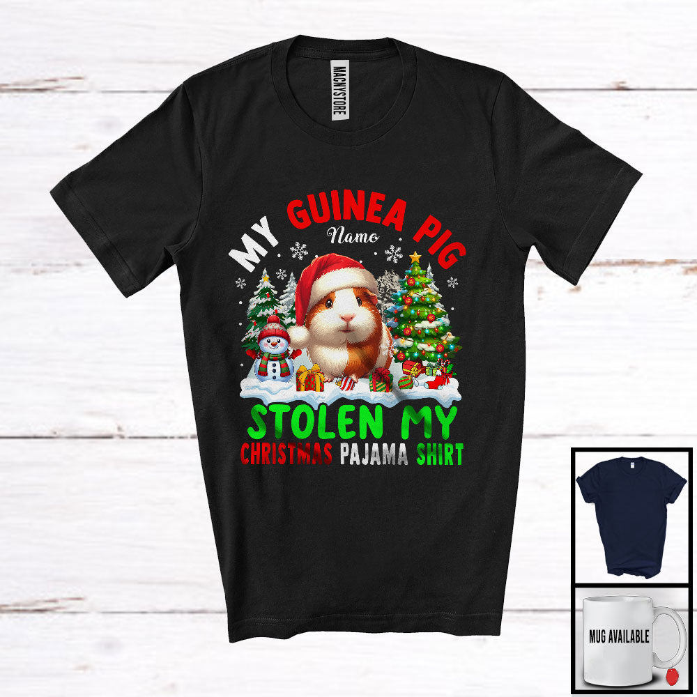 • Personalized Custom Name Guinea Pig Stolen My Christmas Pajama Shirt; Cool X-mas Tree T-Shirt. This cotton t-shirt is a durable staple product with a classic fit. One of the most popular items, it has a relaxed style made for everyday and casual wear.