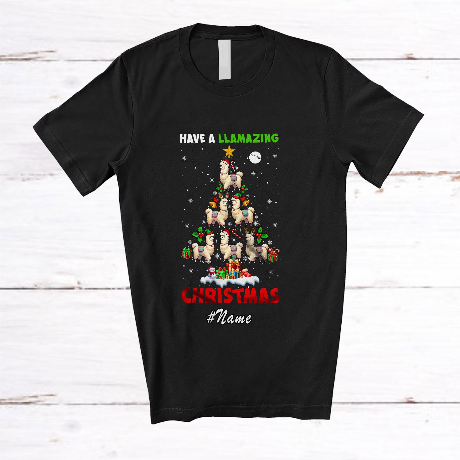 Personalized Custom Name Have A Llamazing Christmas; Amazing X-mas Tree Llama Farmer T-Shirt