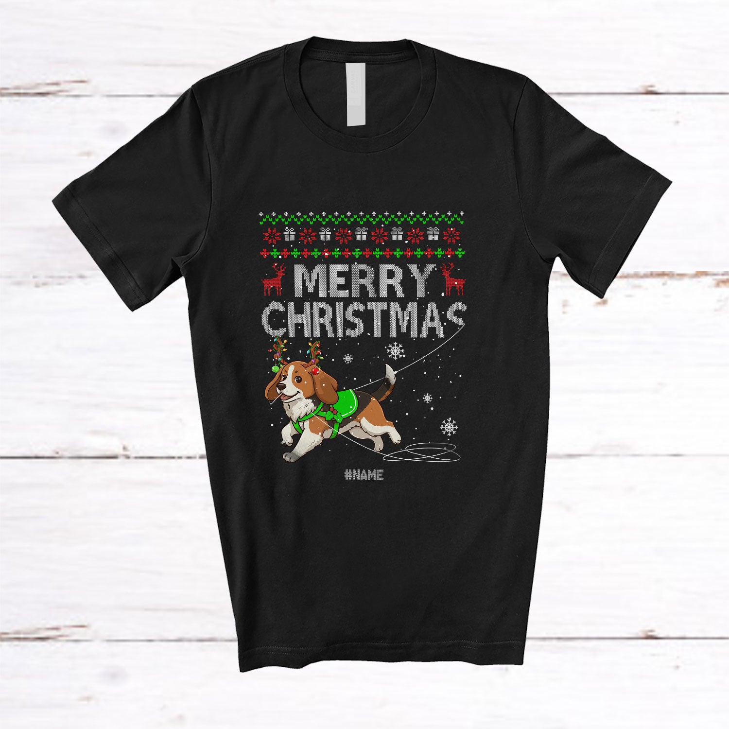 The Personalized Custom Name Merry Christmas; Joyful Sweater Beagle Knitting Crochet Damage T-Shirt destined to impress, and priced at only $12.95, for a limited time.