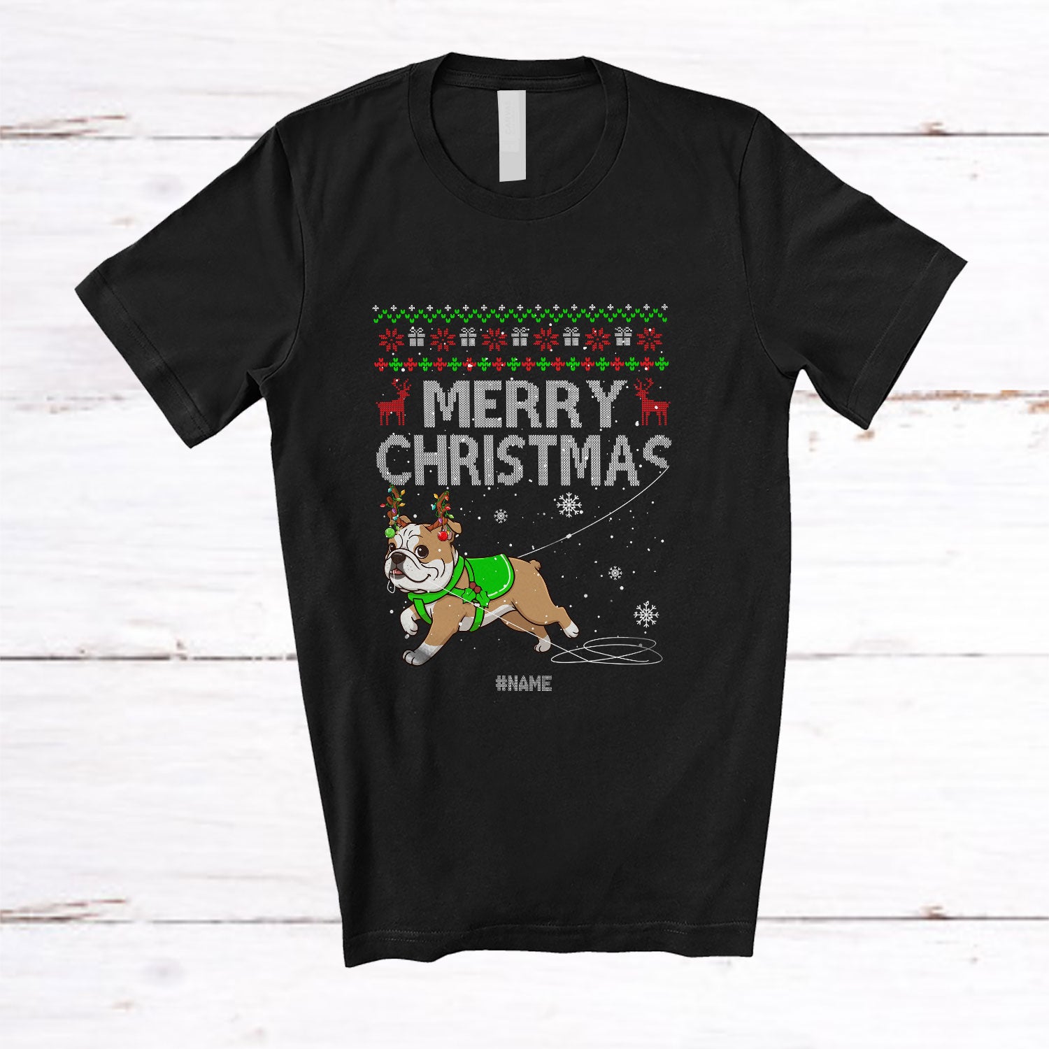 Personalized Custom Name Merry Christmas; Joyful Sweater Bulldog Knitting Crochet Damage T-Shirt