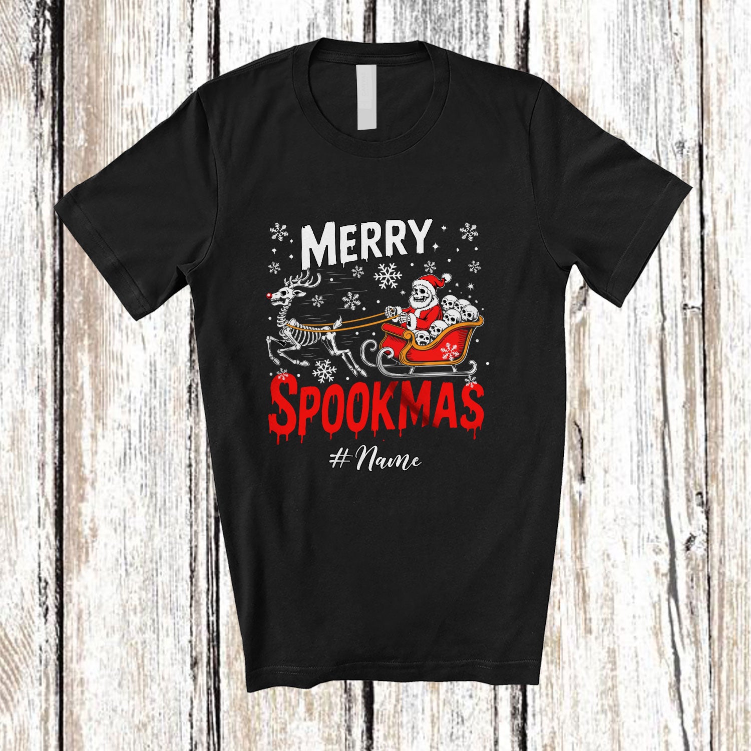 Personalized Custom Name Merry Spookmas; Spooky Christmas Skeleton Santa Sleigh Reindeer T-Shirt