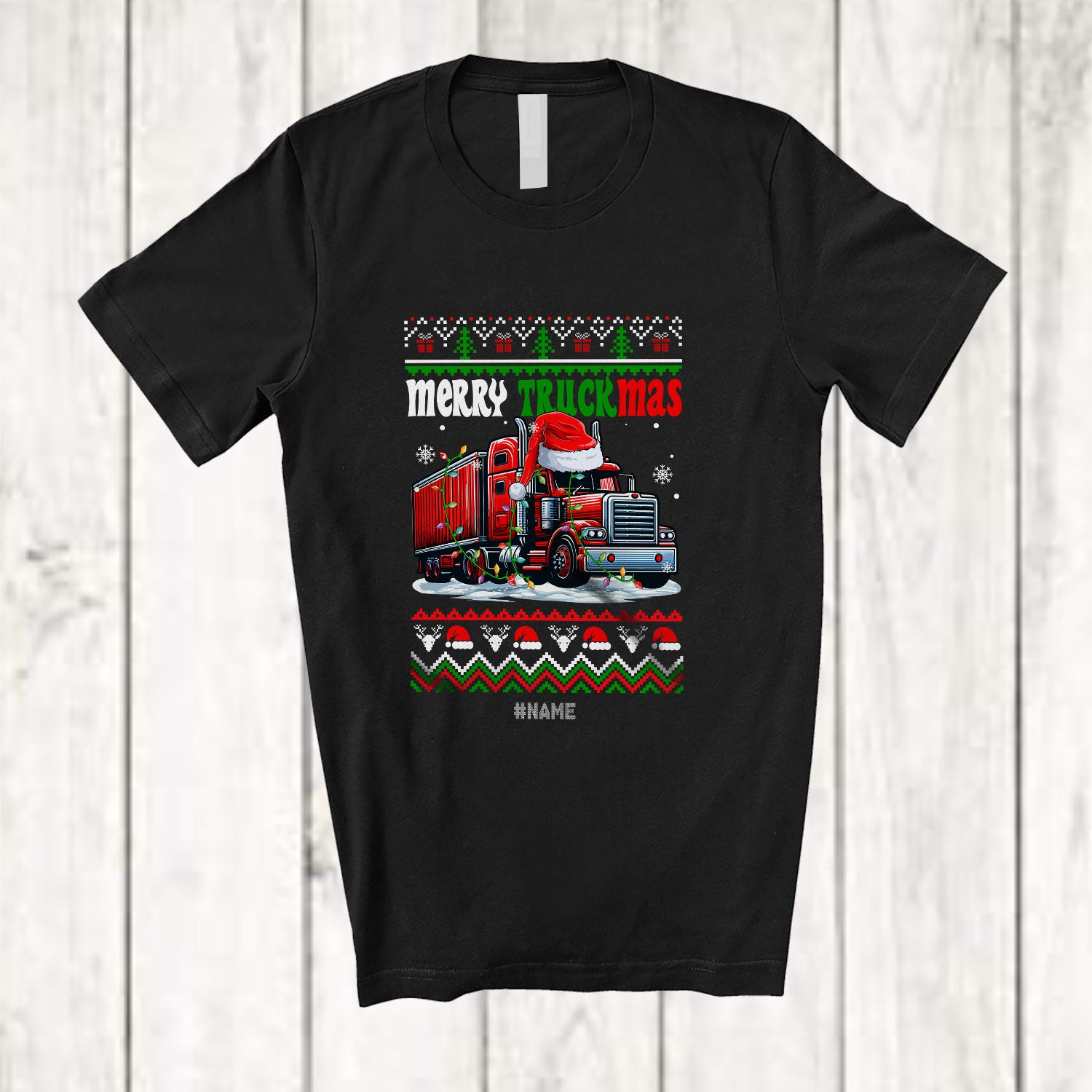 Personalized Custom Name Merry Truckmas; Humorous Christmas Sweater Santa Truck Lover T-Shirt