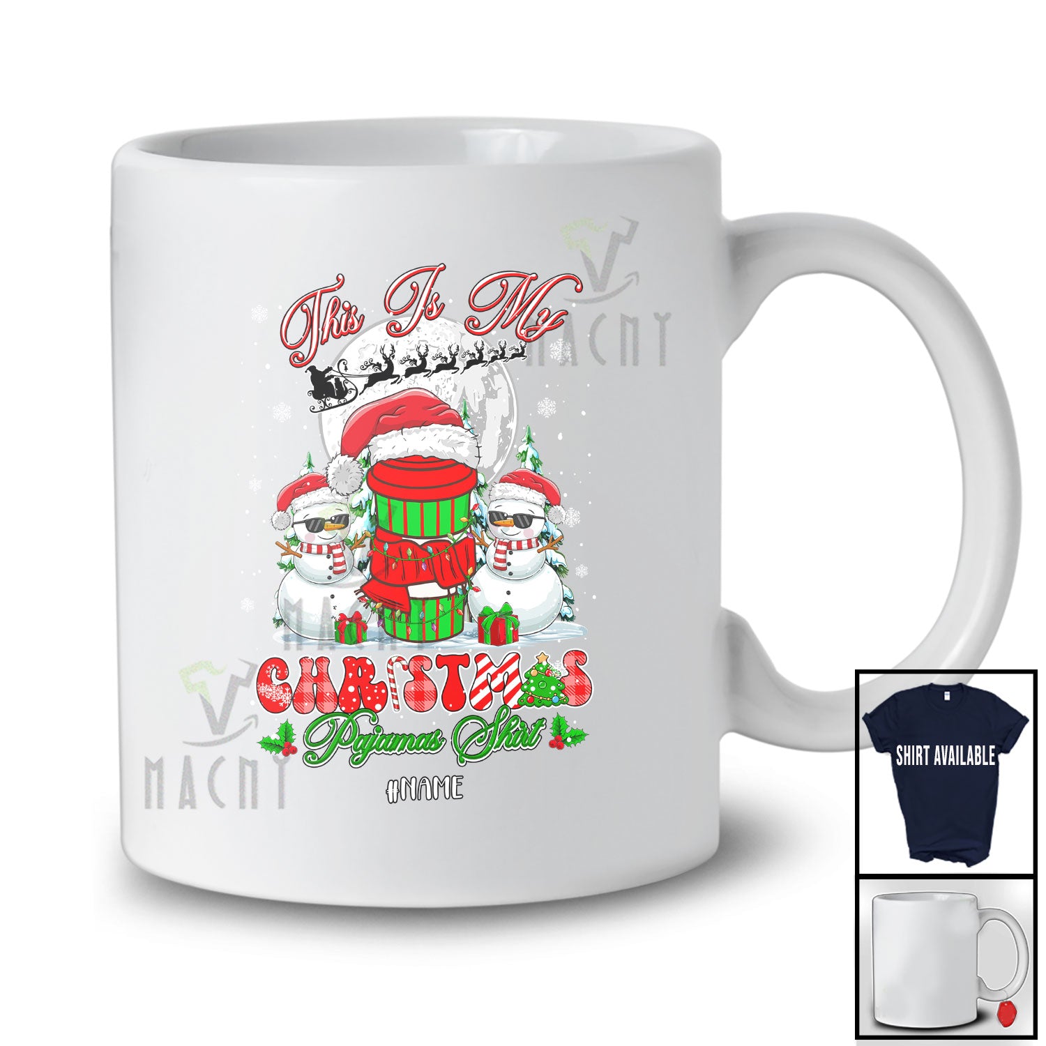 Personalized Custom Name My Christmas Pajamas Shirt; Joyful Santa Snowman Coffee; Drinking T-Shirt