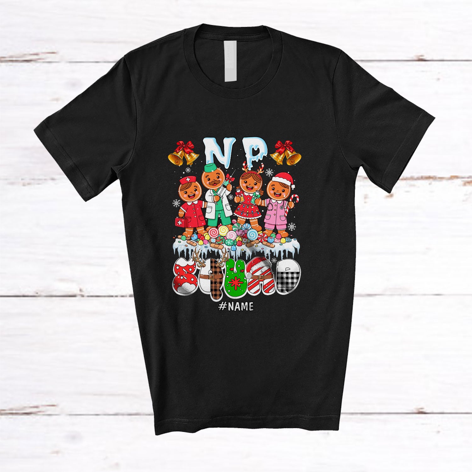 Personalized Custom Name NP Squad; Humorous Christmas Gingerbread Nurse Doctor Medical T-Shirt