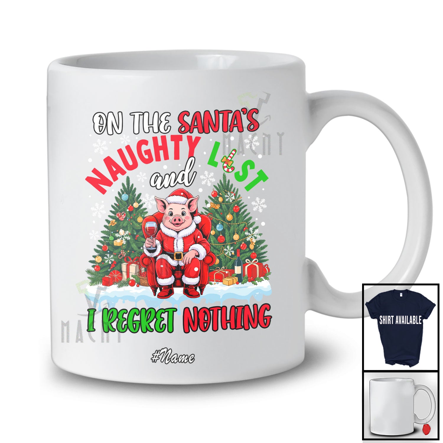Personalized Custom Name On Santa's Naughty List; Joyful Christmas Pig Drinking Farmer T-Shirt