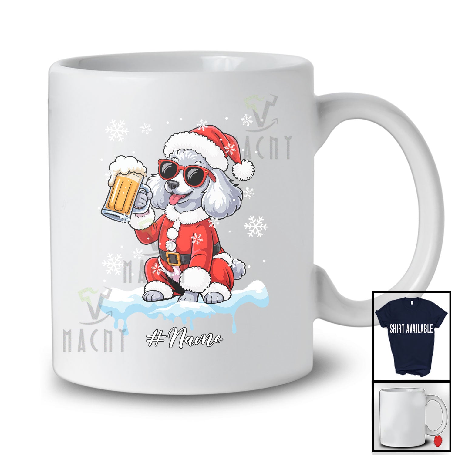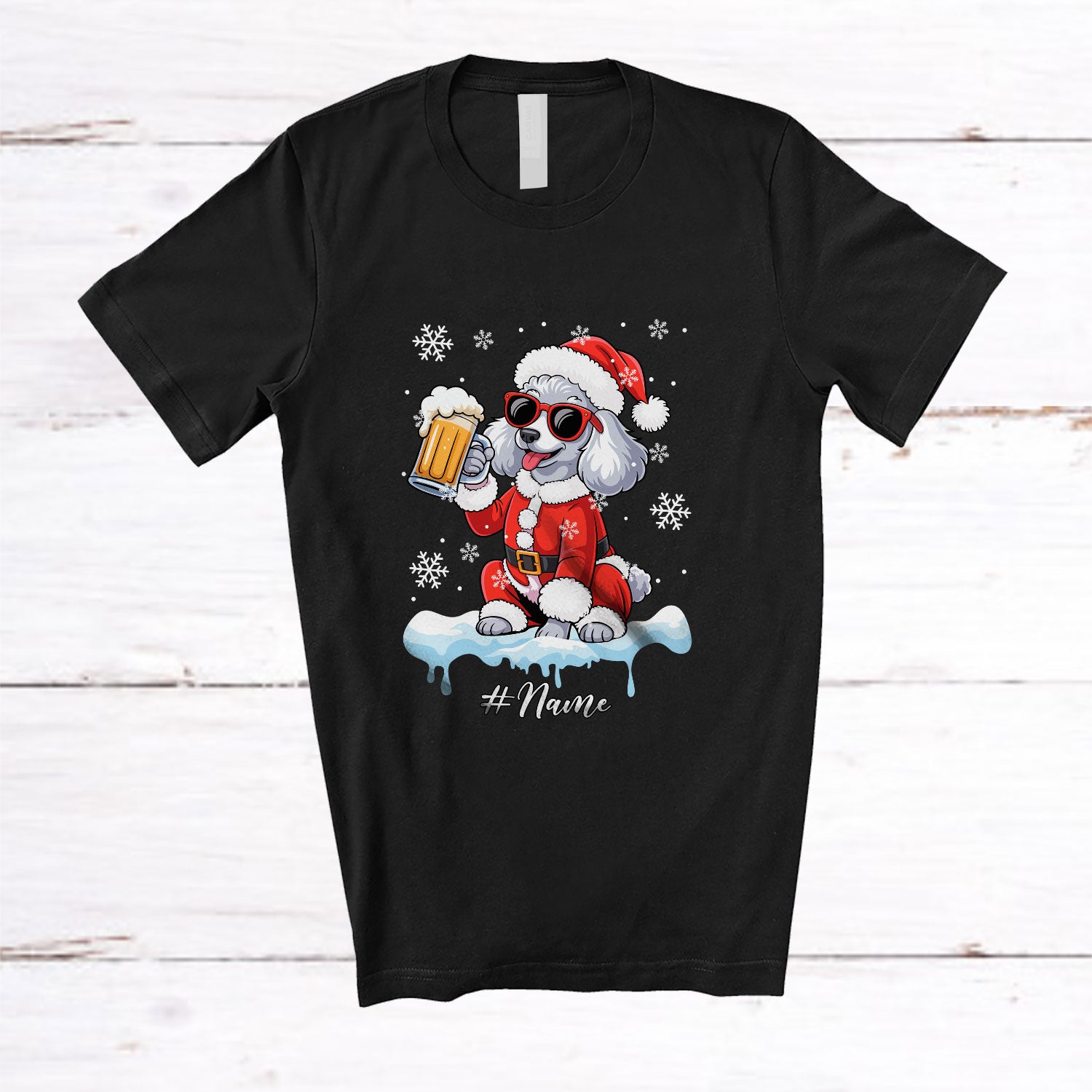 Personalized Custom Name Poodle Santa Drinking Beer; Joyful Christmas Drunker Family T-Shirt
