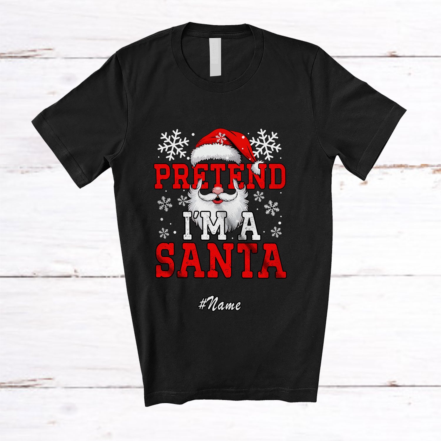 Personalized Custom Name Pretend I'm A Santa; Joyful Christmas Santa Face Cosplay; Family T-Shirt. This cotton t-shirt is a durable staple product with a classic fit. One of the most popular items, it has a relaxed style made for everyday and casual wear.