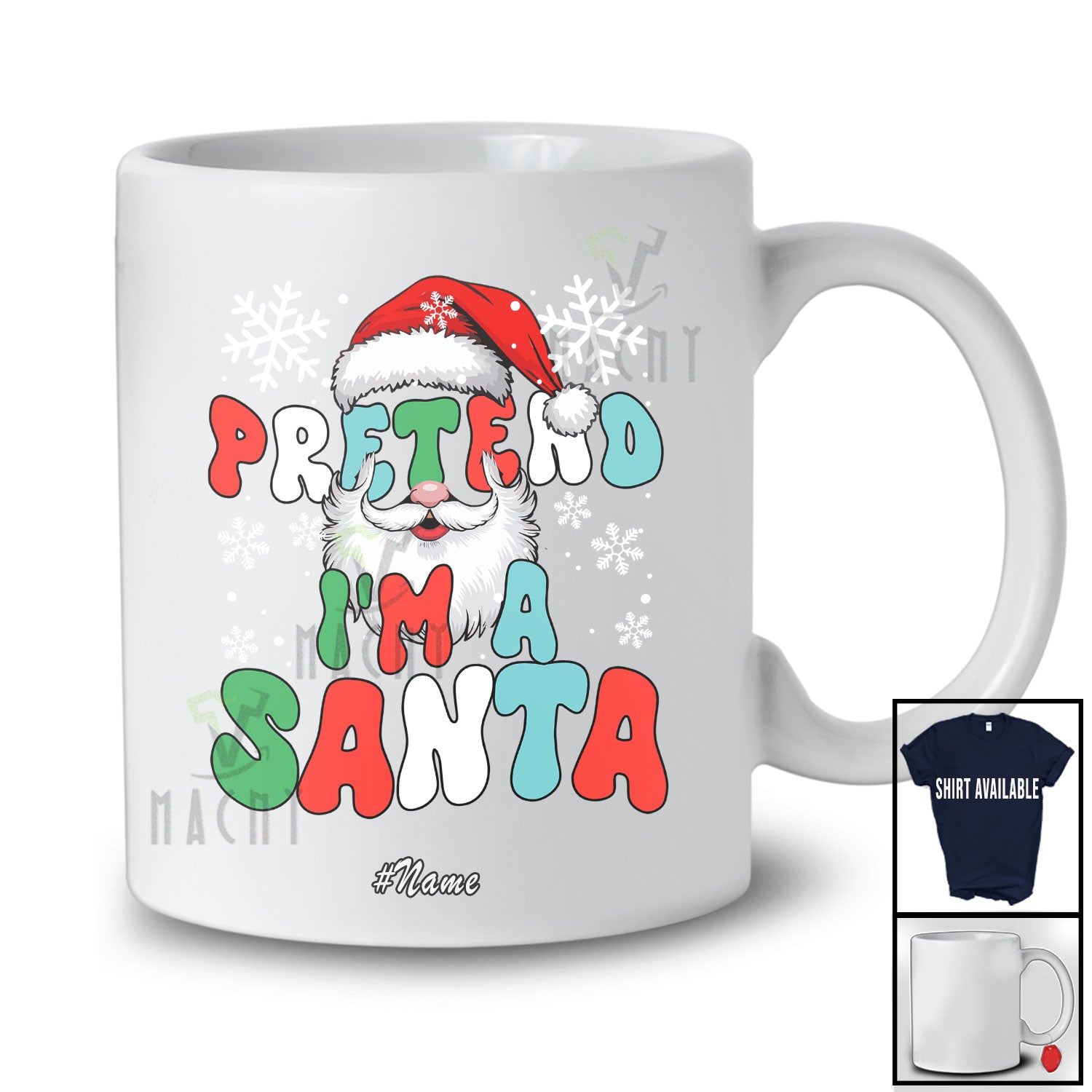 Personalized Custom Name Pretend I'm A Santa; Joyful Christmas Santa Face Cosplay; Groovy T-Shirt. This cotton t-shirt is a durable staple product with a classic fit. One of the most popular items, it has a relaxed style made for everyday and casual wear.