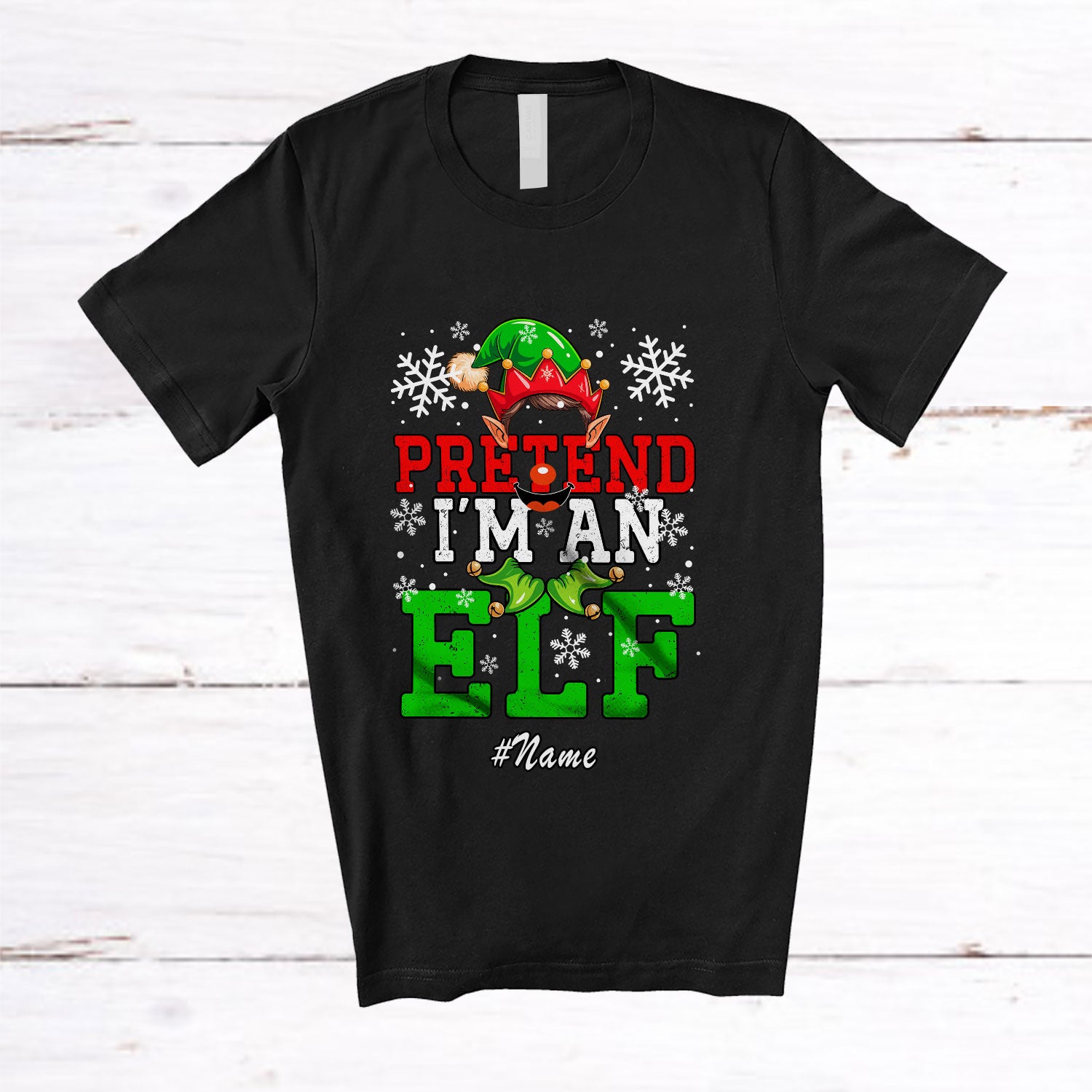 Personalized Custom Name Pretend I'm An Elf; Joyful Christmas Elf Face Cosplay; Family T-Shirt. This cotton t-shirt is a durable staple product with a classic fit. One of the most popular items, it has a relaxed style made for everyday and casual wear.