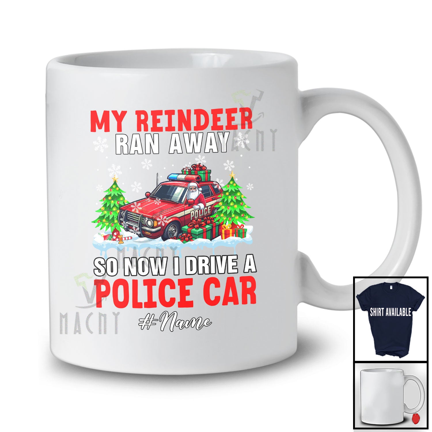 new MacnyStore - Personalized Custom Name Reindeer Ran Away I Drive A Police Car; Joyful Christmas Santa Driver T-Shirt – Macnystore