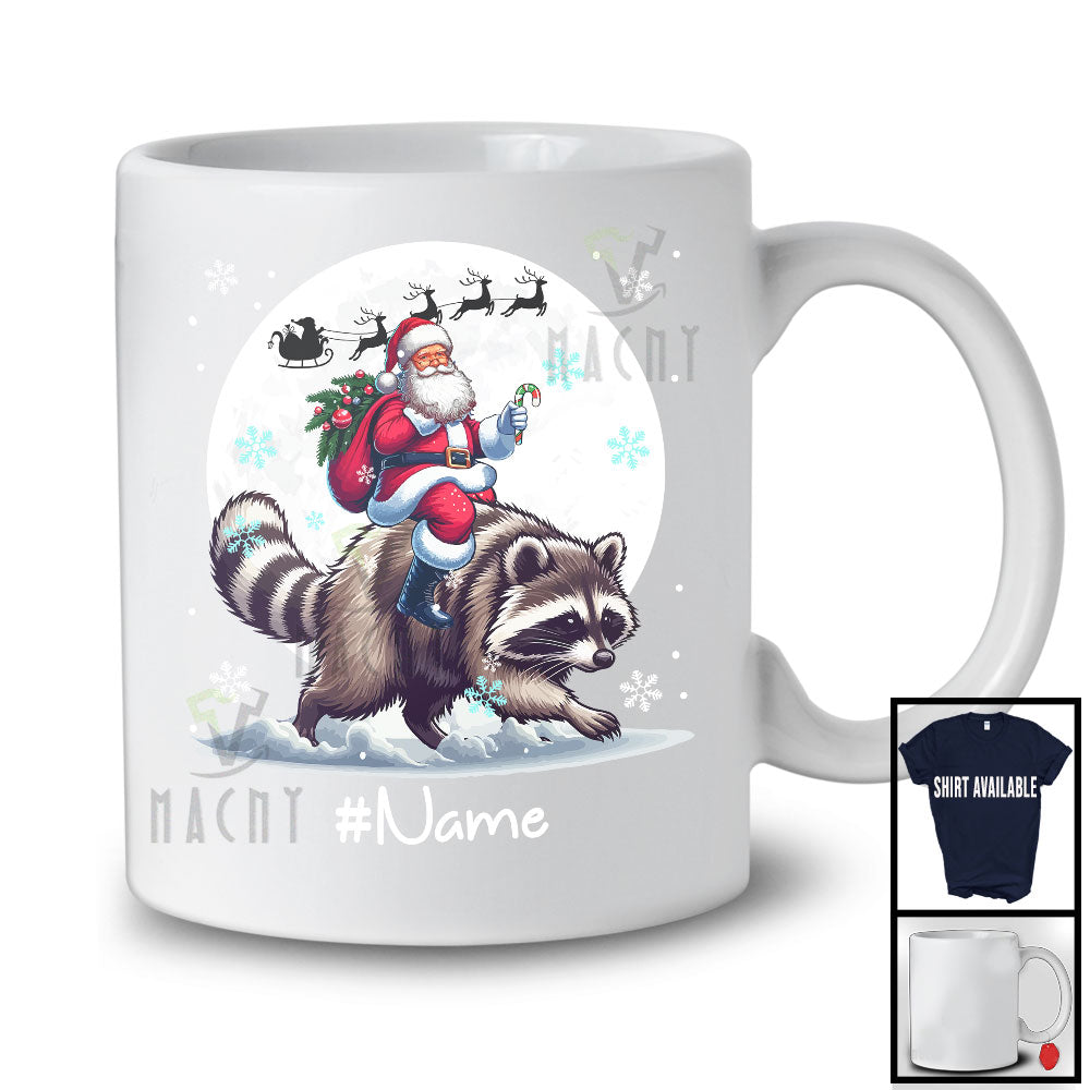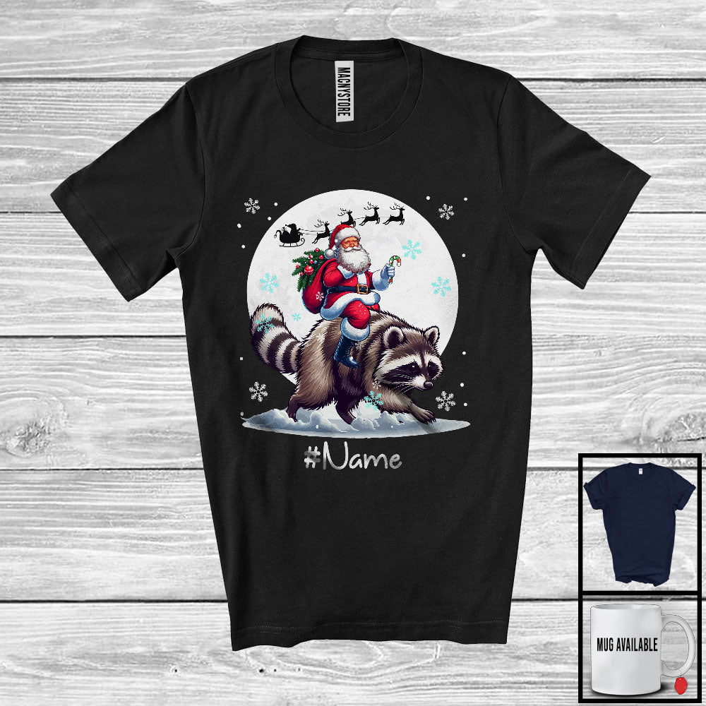 Personalized Custom Name Santa Riding Raccoon, Merry Christmas Moon Snow Raccoon, X-mas T-Shirt