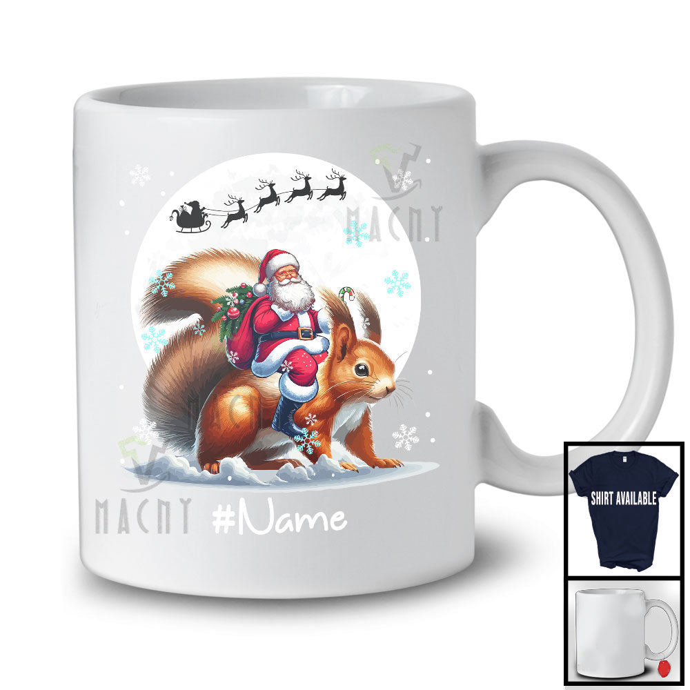 new MacnyStore - Personalized Custom Name Santa Riding Squirrel, Merry Christmas Moon Snow Squirrel, X-mas T-Shirt – Macnystore
