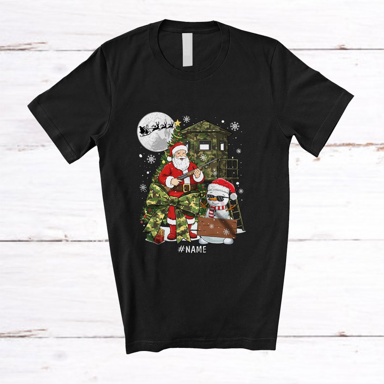 Personalized Custom Name Santa Snowman Go Hunting; Humorous Christmas Santa Hunter Lover T-Shirt