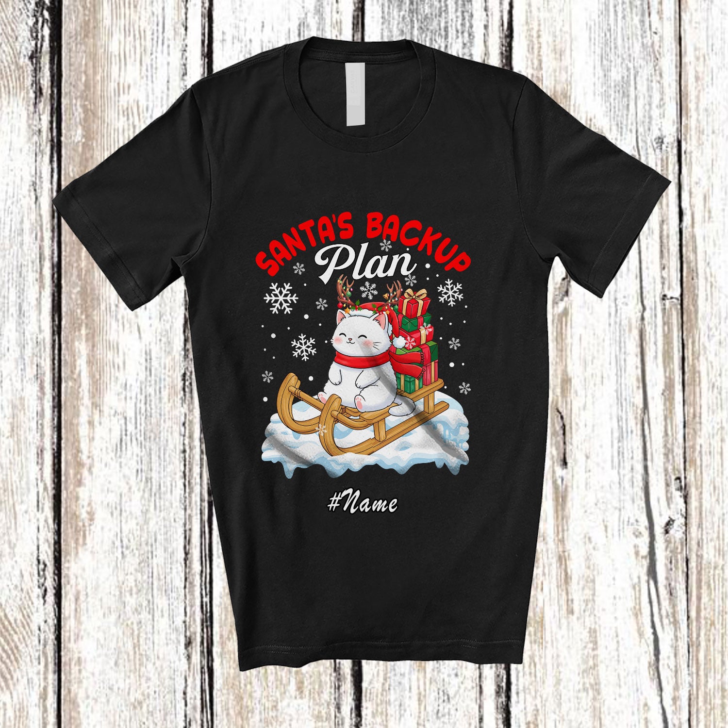 Personalized Custom Name Santa's Backup Plan; Lovely Christmas Santa Sleigh Reindeer Cat T-Shirt