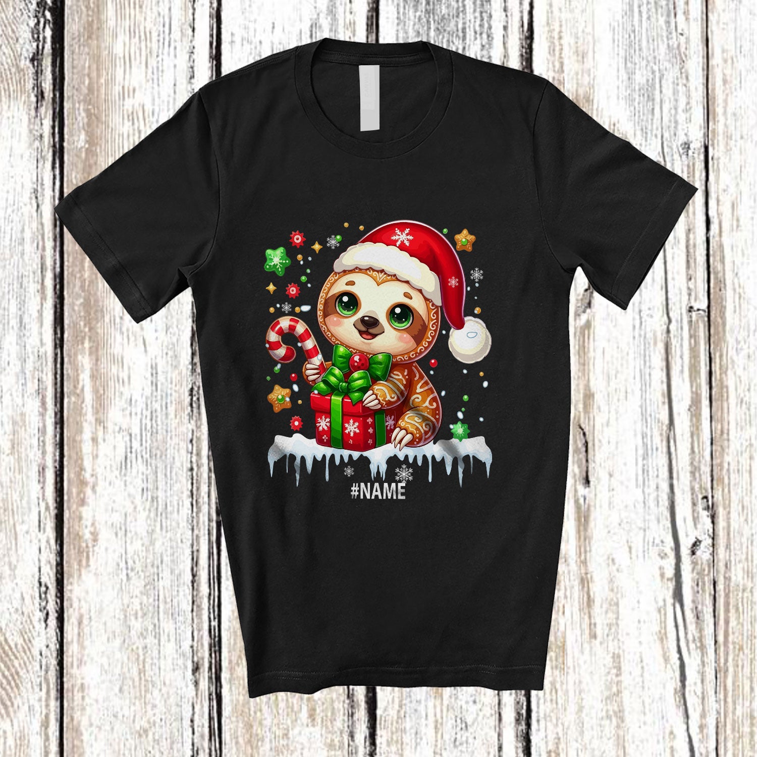 Personalized Custom Name Sloth Santa Gingerbread; Adorable Christmas Baking Baker T-Shirt