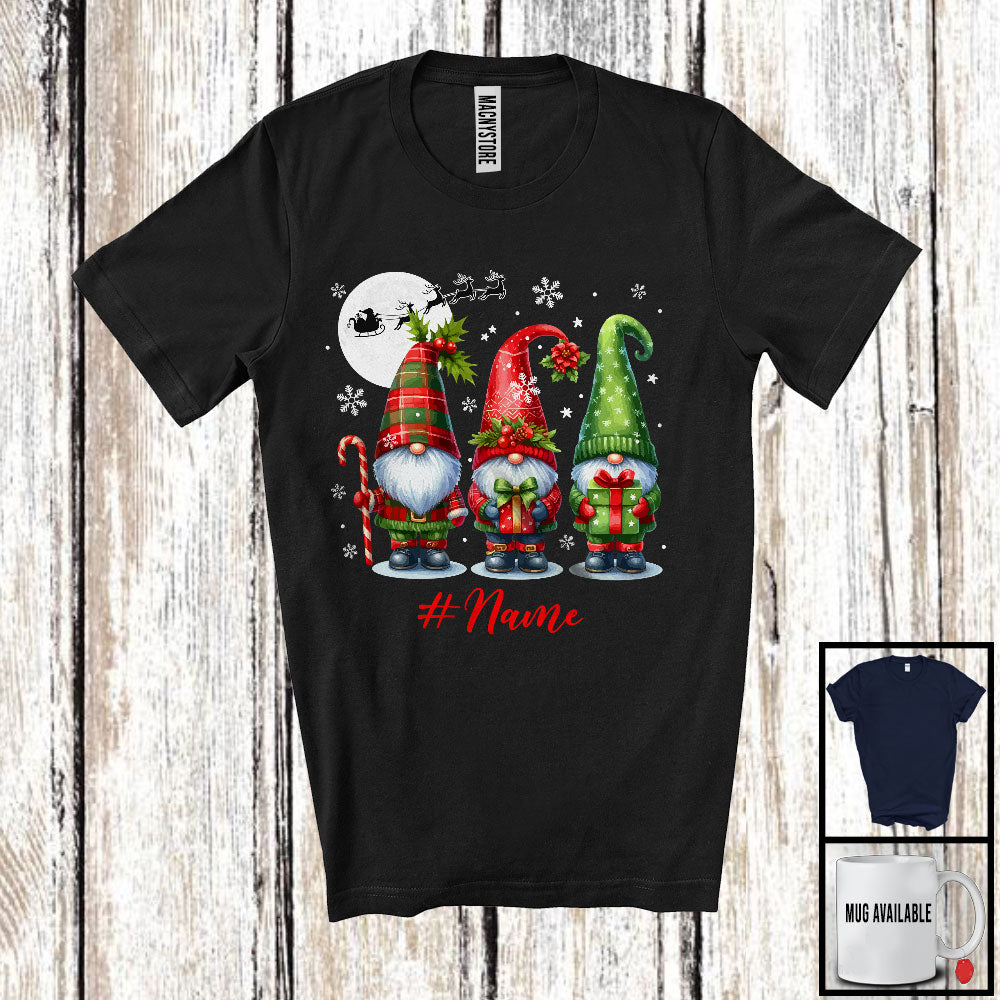 Personalized Custom Name Three Gnomes Squad; Awesome Christmas Moon Snowing; Family T-Shirt