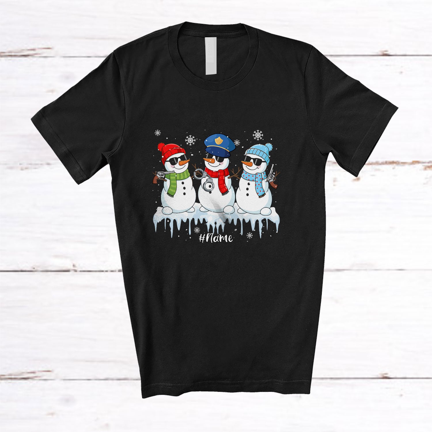 Personalized Custom Name Three Snowman Police Collection; Lovely Christmas Snow Proud Jobs T-Shirt