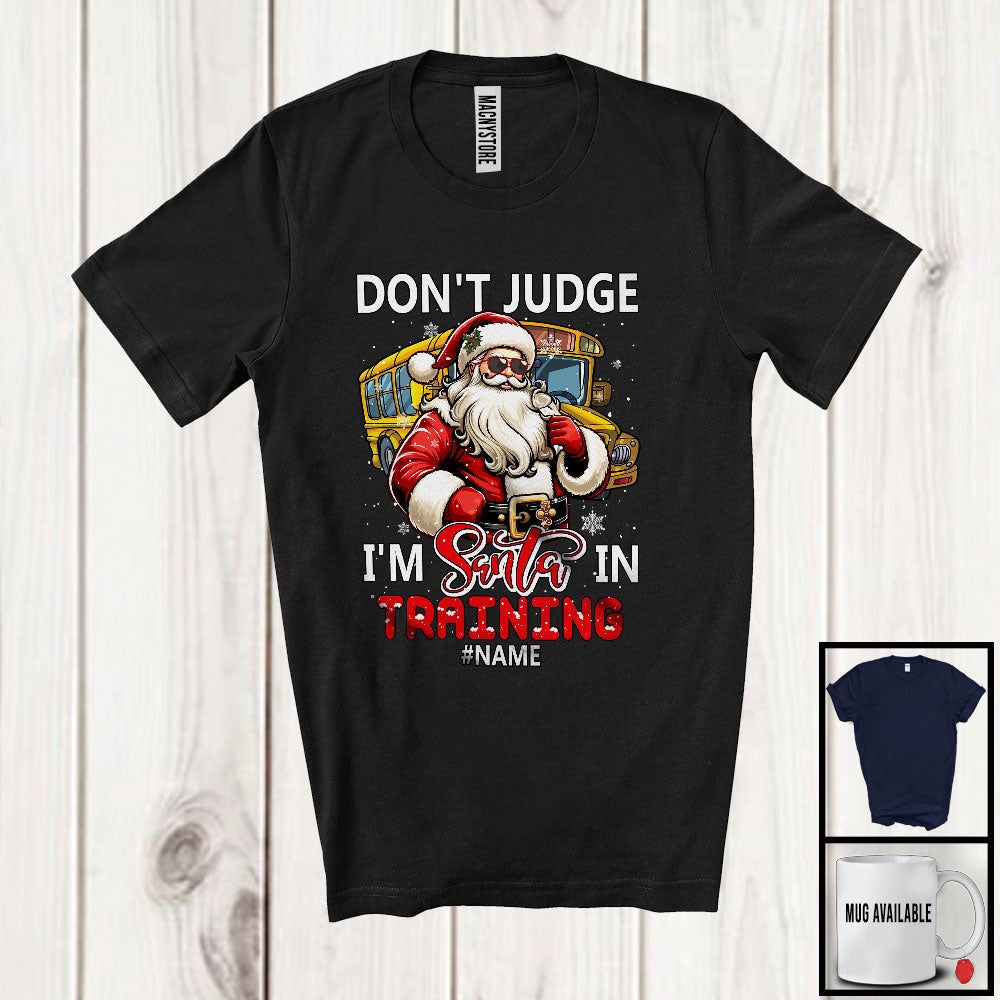 Personalized Don't Judge Santa In Training; Humorous Christmas Custom Name Bus Driver Santa T-Shirt