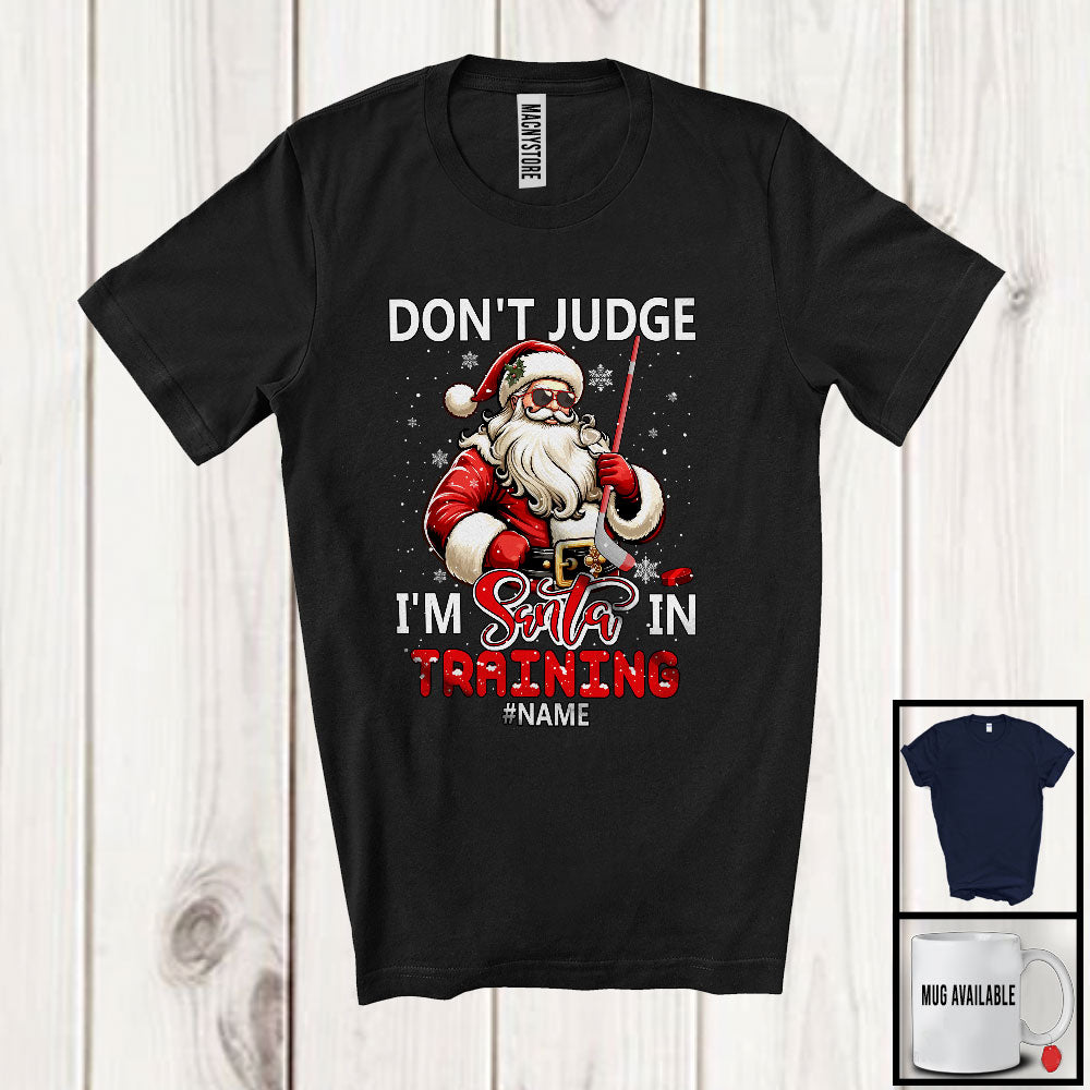 Personalized Don't Judge Santa In Training; Humorous Christmas Custom Name Ice Hockey Santa T-Shirt