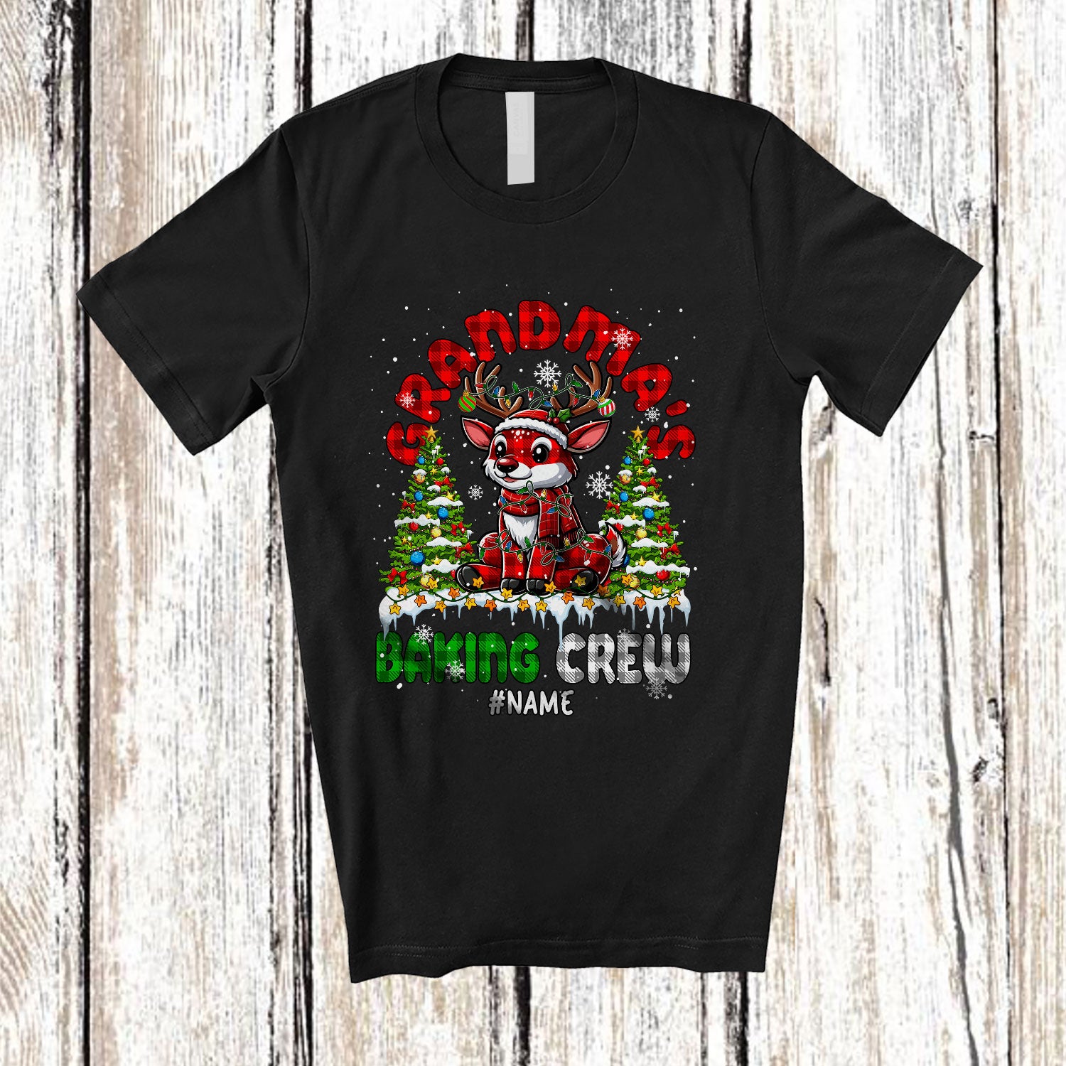 Personalized Grandma's Baking Crew; Wonderful Christmas Red Plaid Reindeer; Custom Name Family T-Shirt